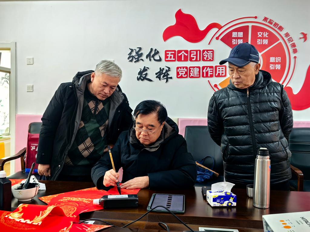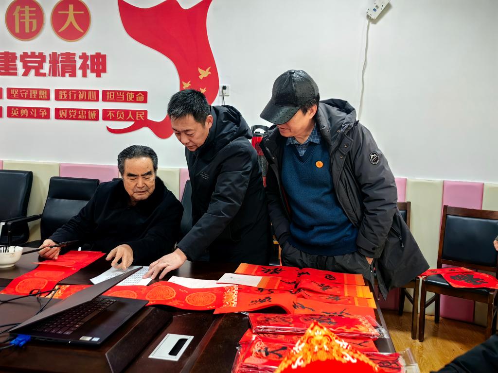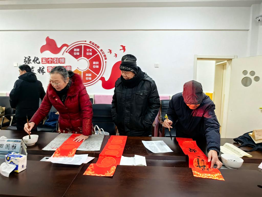 活动现场,多位书法家齐聚一堂,挥毫泼墨、笔走龙蛇,将美好的祝愿倾注于笔墨之间。一副副寓意吉祥、饱含祝福的春联和一个个苍劲有力、形态各异的“福”字跃然纸上。前来领取春联的离退休老同志和社区居民有序选择心仪的对联内容,或观摩书写过程,或耐心等待墨迹晾干。许多老同志拿到墨香犹存的春联后赞不绝口,表示手写春联比印刷品更有温度,也更能体现传统文化的魅力。活动现场欢声笑语不断,充满了温馨和谐的节日气氛。